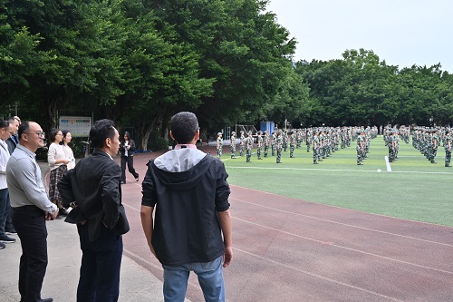 谢锦群详细询问训练进度、后勤服务保障等工作落实情况,实地观摩应急救护科普实操、队列操练、沉浸式思政课实践教学等,对军训工作的周密安排、有序推进,以及同学们展现出的朝气蓬勃、纪律严明的奋进姿态表示充分肯定,勉励同学们珍惜军旅时光,在艰苦训练中锤炼意志、磨砺品格。