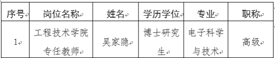 根据《2023年星空网页版登录入口(广东理工职业学院)人才引进公告》的有关规定,经报名、资格审查、考核、体检、考察等工作环节,拟聘用吴家隐为星空网页版登录入口(广东理工职业学院)事业单位工作人员,现予以公示。